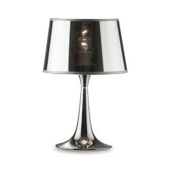 Abat-jour moderna Ideal Lux LONDON 032368 E27 LED lampada tavolo metallo cromo paralume tessuto