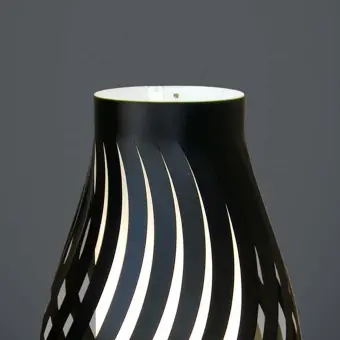 Abat-jour moderna e di nuovo design da collocare su comodini per una luce diffusa e allo stesso tempo dal tocco architettonico. Una lampada da tavolo sinuosa e colorata adatta per grandi e per piccoli. Made in Italy.
