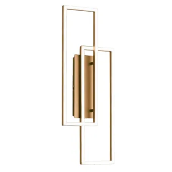 DYANA A FDYAO1 è un’applique dal design scultoreo e sofisticato, capace di trasformare la luce in un elemento strutturale. La sua composizione, basata su due rettangoli sovrapposti, crea un gioco di pieni e vuoti che dona profondità e ritmo visivo alla parete. L’effetto è quello di una presenza luminosa discreta ma potente, perfetta per ambienti che prediligono linee pulite e un’estetica contemporanea.
