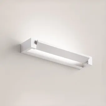 Applique in metallo verniciato colore bianco opaco con diffusore in acrilico satinato, barra frontale orientabile o basculante a 300°.