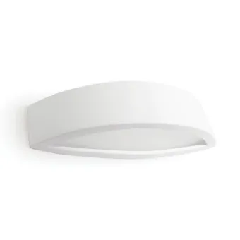Corpo in gesso da poter dipingere con colori all'acqua. L'applique è provvisto di un vetro montato nella parte inferiore. La lampada da pare ha u n design minimale la forma ricorda un mezzo arco dalla curvatura morbida con diffusore in vetro da cui fuoriesce una luce soffusa. Adatto alle pareti per ambientazioni di qualsiasi generi.
