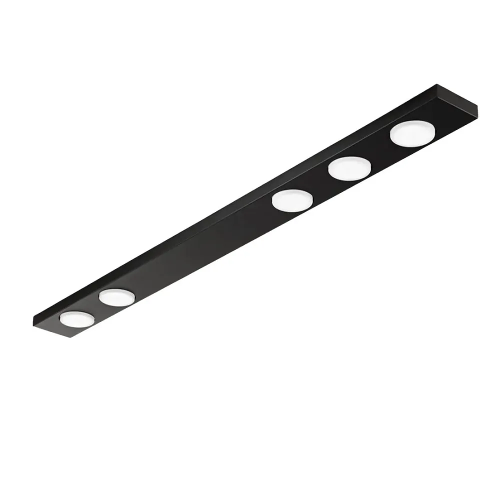 BOTTONE 8568 NE è una plafoniera moderna a cinque luci che si distingue per la sua elegante finitura nera, capace di aggiungere un tocco deciso e contemporaneo a qualsiasi ambiente. Grazie alla sua forma sottile, BOTTONE 8568 NE si adatta perfettamente a ingressi, corridoi, scale, ma trova spazio anche in soggiorni, camere da letto e cucine, dove può essere installata sia a soffitto sia a parete. La struttura lineare la rende inoltre una scelta funzionale per offrire un’illuminazione comoda e ben distribuita.