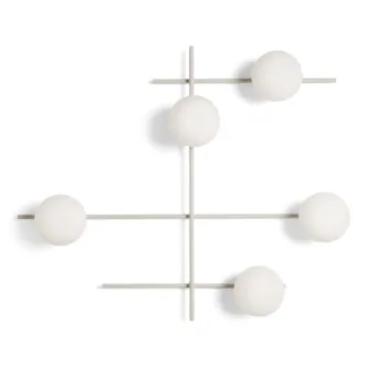 Dimensioni: I bracci misurano 78 + 95 + 53 + 53 cm, con diffusori sferici di diametro 14 cm.