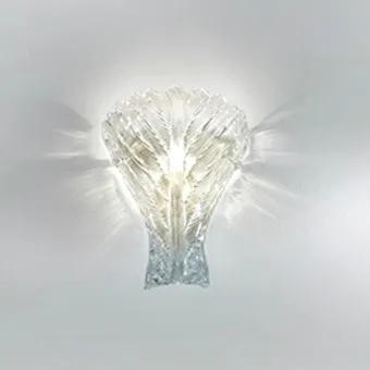 Applique da parete in vetro artistico veneziano che arreda ed illumina ambienti in stile. Un modello raffinato ed elegante consigliato a chi vuole dare un tocco architettonico alla stanza e ama vedere solo la lucentezza del vetro. LOREDAN: un gioco elegante e dal forte carattere dove le forme della Natura sono protagoniste. Made in Italy