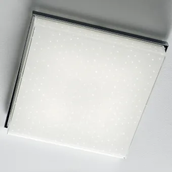 Die BRILLA PL G Deckenleuchte ist eine Leuchte, die sich durch ihre quadratische Form und ihr funkelndes Design auszeichnet. Die BRILLA Leuchte garantiert eine dekorative Oberfläche wie ein Sternenhimmel. Die Struktur ist aus verchromtem Metall und der Diffusor aus glänzend weißem Siebdruckglas mit transparenten Punkten.