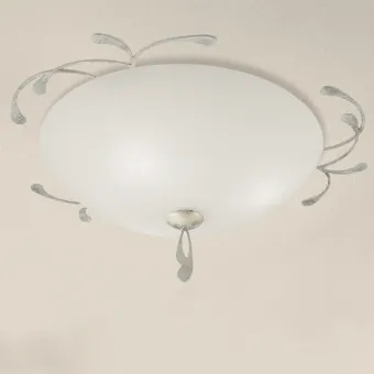 Klassische Deckenlampe mit einfacher Form, aber verschönert durch die Locken, die sie umgeben. Ein Modell, das aufgrund seiner Einfachheit in jedem Raum, Schlafzimmer, Flur, Wohnzimmer, Flur ... seinen Platz findet, mit diffusem Licht und ohne es zu beschweren. Ein Produkt Made in Italy.