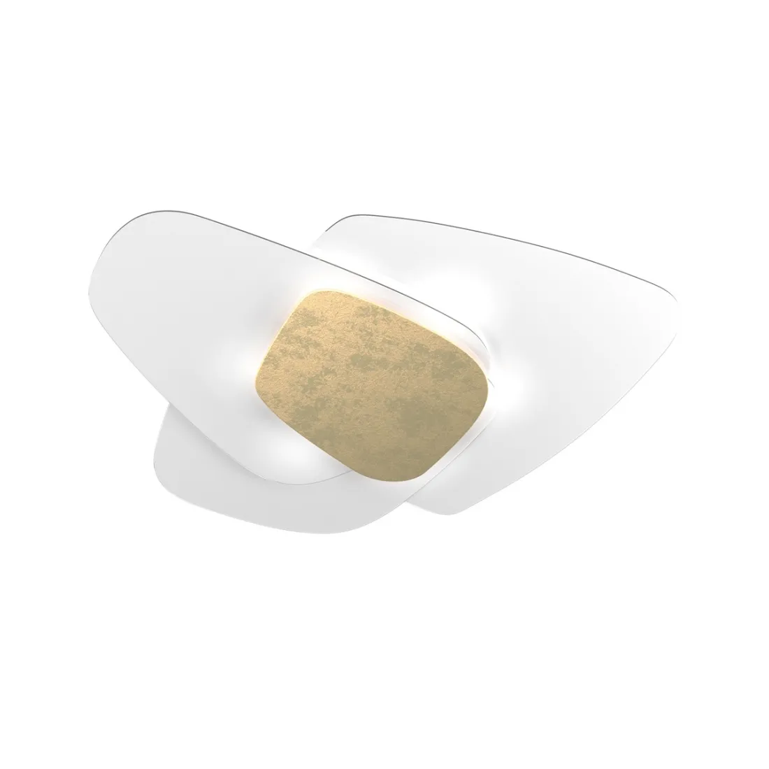 Die Deckenleuchte Strategy 1196 zeichnet sich durch ein elegantes Design mit einem weißen Glassockel und einem mit Blattgold verzierten Mittelteil aus Metall aus. Das durch das weiße Glas gestreute Licht würde eine helle und einladende Atmosphäre schaffen, während das zentrale goldene Glas ein Detail von Stil und Raffinesse darstellen würde. Diese Deckenleuchte kann zur Beleuchtung von Umgebungen wie Wohnzimmer, Esszimmer oder Schlafzimmer verwendet werden und verleiht einen Hauch von Eleganz und Licht.