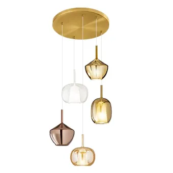 RAIN S5 ist ein 5-flammiger Kronleuchter mit spektakulärem farbigem Borosilikatglas, der jedem Raum einen raffinierten Farbtupfer verleiht. Die Leuchte entfaltet sich wie ein dramatischer Wasserfall von der Decke, verleiht Dynamik und Farbe und erzeugt eine beeindruckende ästhetische Wirkung, die weit über ihre einfache Beleuchtungsfunktion hinausgeht. Ideal für Privathäuser mit hohen Decken, aber auch perfekt für öffentliche Räume, die mit einem dekorativen Element mit starker Persönlichkeit aufgewertet werden sollen.