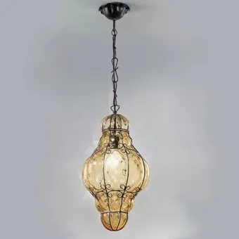 Klassische Pendelleuchte mit spektakulärer Glasbearbeitung, die durch das Biegen des Eisens Form annimmt. Eine alte Handwerkskunst, die in unseren Tagen aufgewertet wird ... das Glas, das in seiner Struktur geblasen und modelliert wird. Ein Schritt zurück in die Jahrhunderte, in denen die Formen an antike Laternen und Gasthäuser zur Zeit der venezianischen Pracht erinnern. Hergestellt in Italien.