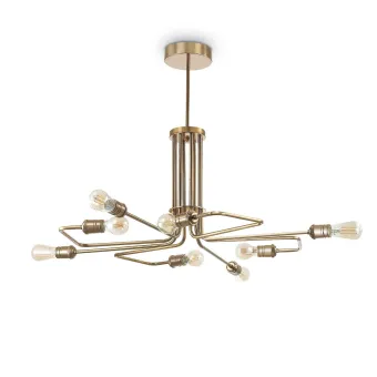 Ganzmetallrahmen mit gealtertem Messingende. Die Aufhängung trägt acht E27-Lampenfassungen für 60W Halogen- oder LED-Lampen. Bernsteinfarbene Fotobirnen (Vintage) ausgeschlossen.