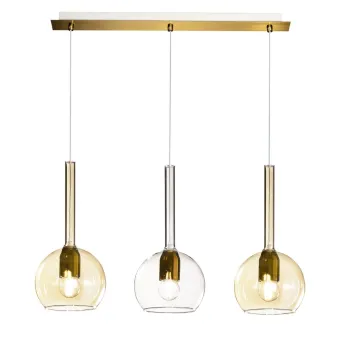 Diese Deckenleuchte, Future 1155 S3, ist perfekt, um eine warme und einladende Atmosphäre in Ihrem Zuhause zu schaffen. Der rechteckige Messingsockel verleiht ihm ein rustikales und traditionelles Aussehen, während die bernsteinfarbenen und transparenten Gläser ein weiches und angenehmes Licht verbreiten. Die Lampe Future 1155 S3 bietet Platz für bis zu drei LED-Leuchtmittel mit E27-Fassung, wodurch Sie dank ihrer geringen Wärmeabgabe und langen Lebensdauer die Kosten Ihrer Stromrechnung senken können. Dank ihrer gestaffelten Höhenform lässt sich diese Deckenleuchte optimal über einem Esstisch oder in einer Sitzecke platzieren, erhellt den Raum gleichmäßig und sorgt für eine angenehme Atmosphäre.
