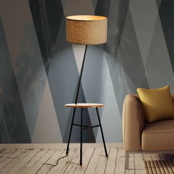 Die Stehlampe besteht aus einem Couchtisch aus Holz mit einer schwarz lackierten Metallstange, die mit einem verstellbaren sandfarbenen zylindrischen Lampenschirm mit elfenbeinfarbener Textur endet. COMODA TE, daher der Name, weil sie eine bequeme Stehleuchte für ihren Couchtisch ist und funktional für diffuses Licht, wo immer sie installiert ist. Ideal für das Wohnzimmer, aber auch leicht in andere Räume des Hauses verlegt, besonders geeignet für einen klassischen Stil.