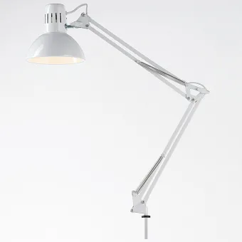Die Schreibtischleuchte ist mit einer Klemme zur Befestigung an einer Oberfläche ausgestattet, es handelt sich um ein modernes Modell und verfügt über einen klassischen Kuppeldiffusor.