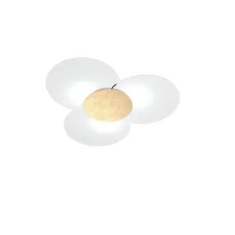 Die CLOVER- Kollektion verfügt über eine weiße Metallstruktur und runde Glasdiffusoren aus weißem, siebgedrucktem, extraklarem Blech. Die zentrale Platte wird durch Magnete befestigt und ist in verschiedenen Ausführungen erhältlich: Sand, Chrom, Anthrazit oder gearbeitet in Blattgold, Blattsilber oder Blattkupfer.