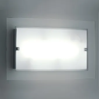 Rechteckiges Glas in 4 mm matt weißer Platte und transparentem Rand. Es ist mit Seitenwänden ausgestattet, die die Glühbirnen abdecken und kommt daher auch für Treppenhäuser in Frage. Struktur aus weißem Metall.