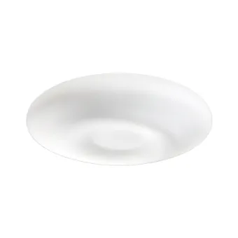 Deckenleuchte, die einfach rund aber einzigartig ist in ihrer zentralen Aussparung im Glas. Ein weißes mundgeblasenes Glas mit diffusem Licht, das in jedem Raum platziert werden kann, für jeden Zweck und zur Befestigung sowohl an der Wand als auch an der Decke.