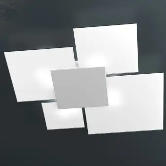 Moderne Deckenleuchte mit geometrischer und unregelmäßiger Form. Eine Deckenlampe aus zwei verschiedenen Glasgrößen, um ein schönes und originelles Spiel im Raum zu schaffen. Eine diffuse Beleuchtung, die es Ihnen ermöglicht, der Umgebung einen Hauch von Farbe zu verleihen.