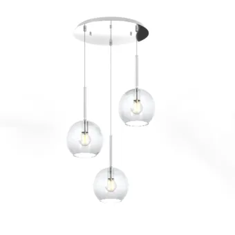 FUTURE 1155CR/S3 TM mit runder Rosette aus verchromtem Metall und 3 Pyrex-Glasflaschen mit einem Durchmesser von 20 cm, erhältlich in den Ausführungen Transparent, Bernstein, Chrom, Gold und Kupfer. Eine Kollektion, die dank der zahlreichen verfügbaren Variationen eine große Auswahlmöglichkeit bietet. Kabel längenverstellbar. Ein modernes und äußerst vielseitiges Element mit einem hervorragenden Preis-Leistungs-Verhältnis, ideal für jeden Kontext, insbesondere für die Installation im Wohnzimmer oder in der Küche. Die untere Öffnung der Ampullen ermöglicht eine einfache Wartung und Reinigung. Dank der Lampenfassungen mit E27-Fassung ist es möglich, jede Art von LED-Lichtquelle einzusetzen, wobei die Leistung und Farbe des Lichts Ihren Bedürfnissen entspricht. Glühbirnen separat erhältlich.