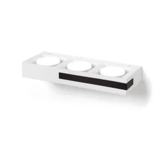 Die klaren Oberflächen und kompakten Formen harmonieren perfekt miteinander, während das metallische Detail – ein ikonisches Element der Kollektion – die Formgebung mit einem modernen Akzent durchbricht und so Charakter und Modernität verleiht. Dank der drei verfügbaren Oberflächen – Mattschwarz, gebürstetes Messing und gebürstete Bronze – fügt sich die VELIA AP3 nahtlos in moderne, minimalistische Interieurs ebenso ein wie in klassische Umgebungen und bewahrt dabei stets eine ausgewogene Eleganz.