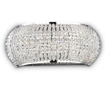 Gestell aus verchromtem Metall. Diffusor bestehend aus Reihen von geschliffenen Kristallperlen und Boden mit rundem sandgestrahltem Glas geschlossen. Die Wandleuchte trägt drei G9-Lampenfassungen für Halogenlampen max. 28W oder LED. Halogenlampen enthalten.
