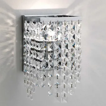 Kleine Applikation mit quadratischen Kristallelementen. Eine Wandlampe, die auch als Schlafzimmer-Abat-Jour oder Spiegelapplikation verwendet werden kann.