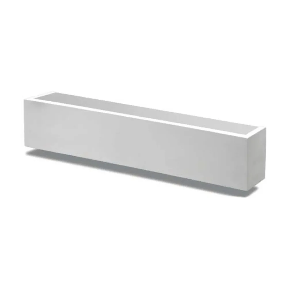 Wandleuchte aus Gips mit einer geometrischen, essentiellen und klaren Form, die nach oben oder unten leuchtet. Ein indirektes Licht, das an der Wand reflektiert und eine Atmosphäre angenehmer Gesellschaft schafft. Eine Wandleuchte, die mit einem Notfall-Kit ausgestattet ist, das es über einen speziellen Treiber und ein spezielles Leuchtengehäuse ermöglicht, sich automatisch einzuschalten, wenn am Installationsort ein Stromausfall auftritt, der zu einem Ausfall der normalen Beleuchtung führt.
