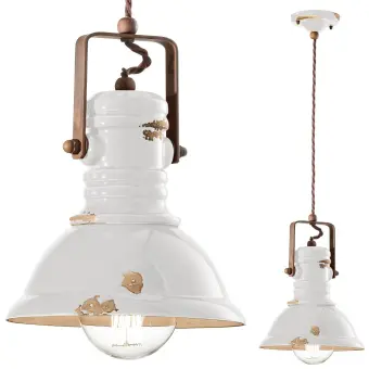 Rustikaler Kronleuchter Ferroluce Retrò INDUSTRIAL C1691 E27 LED Keramik Pendelleuchte
