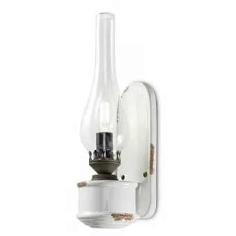 Rustikale Wandleuchte, die an die alte Öllampe der Vergangenheit erinnert. Eine einfache, dekorative und helle Wandleuchte zur Beleuchtung von Möbeln im rustikalen oder Vintage-Stil. Eine keramische Wandleuchte, die der Umgebung einen warmen und vertrauten Ton verleiht. Ein Produkt aus Italien.