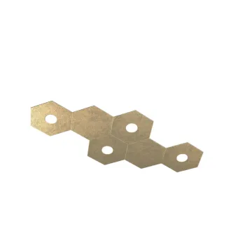 Kollektion von sechseckigen Lampen aus Metallplatten, die in verschiedenen Ausführungen lackiert sind, WEISS, GRAU, SAND, BRAUN, GRAU, ANTHRAZIT, SILBERBLATT, GOLDBLATT oder KUPFERBLATT. Die Deckenleuchte ist mit vier GX53-Lampenfassungen für max. 9W LED-Lampen ausgestattet.