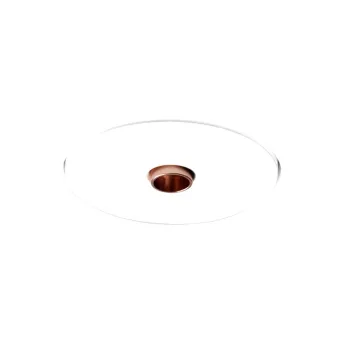 Die äußerst dezente Lichtquelle zieht die Blicke auf sich: eine nur 20 mm große Öffnung, die von einem eleganten Aluminiumring mit gebürsteter Kupferoberfläche eingefasst wird. Dieses Detail erzeugt einen raffinierten Kontrast zwischen der neutralen Putzoberfläche und der Wärme des Metalls und sorgt so für einen anspruchsvollen visuellen Effekt bei gleichzeitiger Minimierung von Blendeffekten.