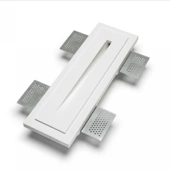 Einbaustrahler für Gipskarton- oder Mauerwerkswände als Applikation oder als Wegmarkierung zur Beleuchtung eines Gehweges. Ein schmaler Lichtstrahl mit einer modernen und anonymen Linie. Ein komplettes Verschwinden mit der Wand.