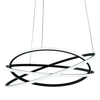 Die Pendelleuchte ATIA SG N ist ein modernes Kunstwerk, das Design und Eleganz in einer einzigen Lichtlösung vereint. Diese aus schwarzem Aluminium gefertigte Lampe mit Silikondiffusor zeichnet sich durch ihre ineinander verschlungene Kreisform und die 3 außen angebrachten LED-Module aus, die ein diffuses und angenehmes Licht erzeugen.
