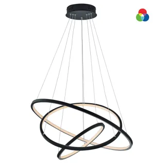 Hochmoderne anthrazitfarbene Aufhängung, Ringe, RGB-LED + dimmbare Weißlicht-LED