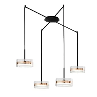 AERE 8217 OR LC ist ein moderner vierflammiger Kronleuchter mit warmen LED-Lichtquellen, der in einer raffinierten Version mit mattschwarzem Rahmen und roségoldenen Glasdiffusoren angeboten wird. Die Struktur mit „Spinneneffekt“, bestehend aus einzelnen Pendeln, die an die Silhouette einer Spinne erinnern, verleiht dem Design einen dynamischen und modernen Charakter. Diese Konfiguration ermöglicht eine gezielte Lichtlenkung und wertet jeden Raum mit Eleganz und Funktionalität auf. AERE 8217 OR LC ist ideal für Wohn- und Geschäftsräume und ein Einrichtungselement, das Stil und Lichtleistung vereint.