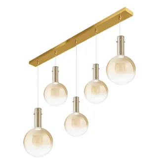 AMPOLLA S5 ist eine Pendelleuchte, die Funktionalität und Raffinesse vereint und Räume mit einem Hauch zeitgenössischer Eleganz und zeitloser Attraktivität bereichert. Die edle Oberfläche und die warmen Bernsteintöne der Glasdiffusoren verleihen dem Raum eine einladende und anspruchsvolle Atmosphäre. Die weichen, abgerundeten Formen des Glases, kombiniert mit den gestaffelten und anpassbaren Höhen, erzeugen ein Gefühl von Kontinuität und visueller Harmonie und machen den Kronleuchter zu einem zentralen Designelement. AMPOLLA S5 eignet sich perfekt für Restaurants, Bars, Büros und Privathäuser und ist die ideale Wahl für alle, die stilvolle Beleuchtung suchen.