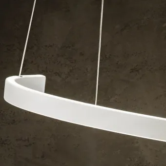 Pendelleuchte mit geschwungener Form und außergewöhnlichem Design. Ein ultramoderner Kronleuchter von extremer Schlichtheit, der von beiden Seiten gleichmäßig leuchtet und sowohl im Wohn- als auch im Schlafbereich eingesetzt werden kann. Die Pendelleuchte ist innovativ und kann auf Wunsch auch über das Dalì-System, per Push-Taste oder per Bluetooth gedimmt werden. Ein Produkt Made in Italy.