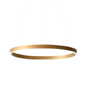 Ultramoderner Kronleuchter in seinem Design und klassisch in seiner Ausführung, hergestellt aus einem einfachen Ring mit einer LED-Lichtquelle, die das Licht nach oben und unten streut. Eine äußerst einfache Aufhängung, die sich für Flächen im Wohnbereich oder im Schlafbereich empfiehlt. Eine ideale Leuchte für diejenigen, die nach Beleuchtung und Wesentlichkeit suchen.