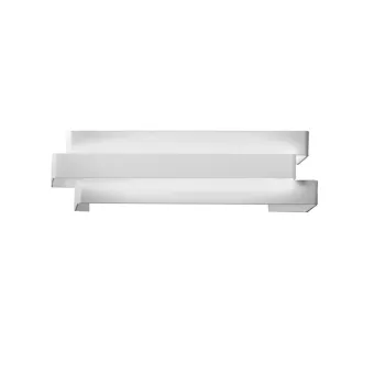 Die Wandleuchte besteht aus drei Bändern, zwei am Ende aus lackiertem oder verziertem Metall und das zentrale Band aus weißem Methacrylat, das die Funktion hat, Licht zu streuen.