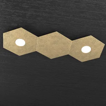 Kollektion von sechseckigen Lampen aus Metallplatten, die in verschiedenen Ausführungen lackiert sind, WEISS, GRAU, SAND, BRAUN, GRAU, ANTHRAZIT, SILBERBLATT, GOLDBLATT oder KUPFERBLATT. Die Deckenleuchte trägt zwei GX53 Lampenfassungen für eine LED-Glühbirne von max 9W nicht im Lieferumfang enthalten.