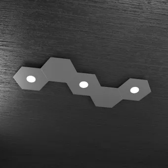 Wand- oder Deckenleuchte aus lackiertem Metall mit diffusem Licht. Eine moderne Deckenleuchte mit einer schönen sechseckigen Form, die sowohl an der Decke als auch an der Wand für ein diffuses und gut verteiltes Licht installiert werden kann. Lichtelemente + Zierelement können nach Belieben arrangiert werden. Ein Produkt Made in Italy.