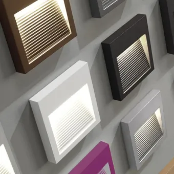 FLAT Q12 Stufenleuchte aus Metall für den Innenbereich, erhältlich in verschiedenen Farben (entsprechende Abbildungen mit einfachem, nach unten gerichtetem Licht). FLAT Q12 eignet sich perfekt für Durchgangsbereiche wie Eingänge oder Flure sowie Treppen, um die Stufen zu beleuchten und die Sicherheit beim Treppensteigen in der Nacht zu verbessern. Installieren Sie sie entlang von Fluren oder Durchgängen, um eine diskrete und sichere Beleuchtung zu gewährleisten und die Bewegung ohne Stolpergefahr zu erleichtern.