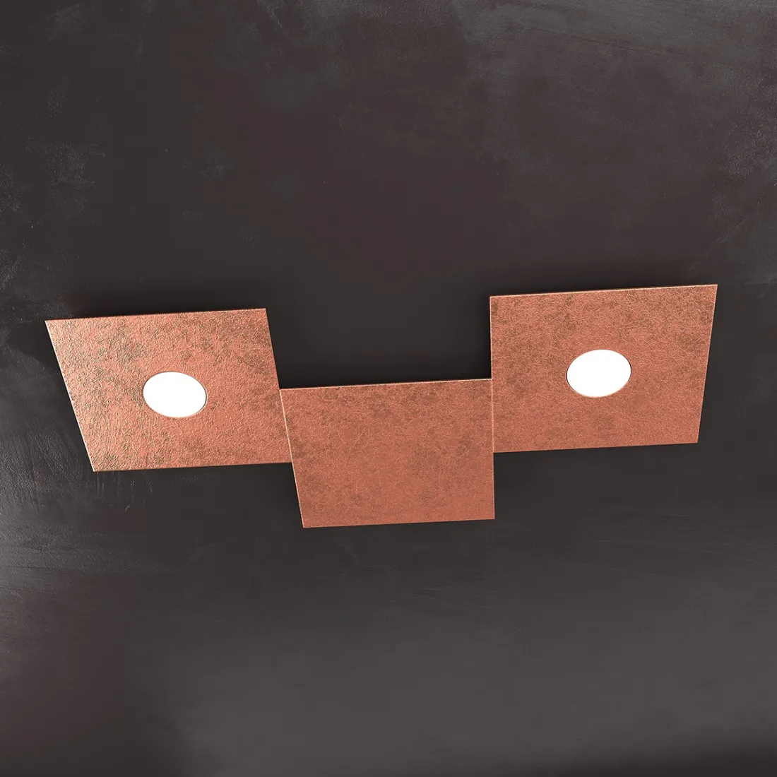 Kollektion quadratischer Lampen aus Metallplatten, die in verschiedenen Ausführungen lackiert sind, WEISS, GRAU, SAND, BRAUN, ANTHRAZITGRAU, SILBERBLATT, GOLDBLATT oder KUPFERBLATT.