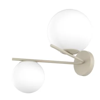 Strukturen aus sandfarben lackiertem Metall und Diffusoren aus geblasenem und mattweiß geätztem Glas. N.1 Glasdurchmesser 15cm und n. 1 Durchmesser 20 cm.