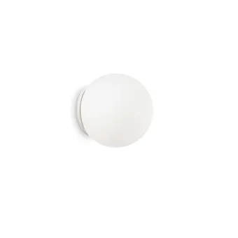 Moderne Glaswandleuchte mit einfacher und offensichtlicher Form mit diffusem Licht. Eine kleine kugelförmige Wandleuchte, die nicht nur gleichmäßig beleuchtet, sondern auch mit extremer Einfachheit eingerichtet ist.