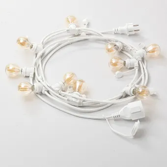 5 Meter Lichterkette bestückt mit 10 Lampenfassungen mit E27-Fassung, E14 auf Anfrage.