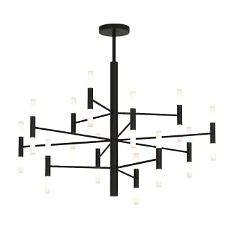Die Leuchte SPACE 1226/100 besticht durch ihr kühnes architektonisches Design, das sich durch eine eindrucksvolle Wirkung und eine klare Geometrie auszeichnet. Ihre Komposition besteht aus zwölf Metallarmen, die in einem geordneten, radialen Muster angeordnet sind und in die 24 zylindrische Diffusoren aus satiniertem Acrylglas eingesetzt werden. Jedes Element ist so gestaltet, dass es eine gleichmäßige Lichtverteilung und damit eine vollständige 360°-Ausleuchtung des Raumes gewährleistet. Ideal für große Wohnzimmer oder moderne Wohnbereiche, schafft sie eine einladende, zeitgemäße Atmosphäre mit starker ästhetischer Wirkung.