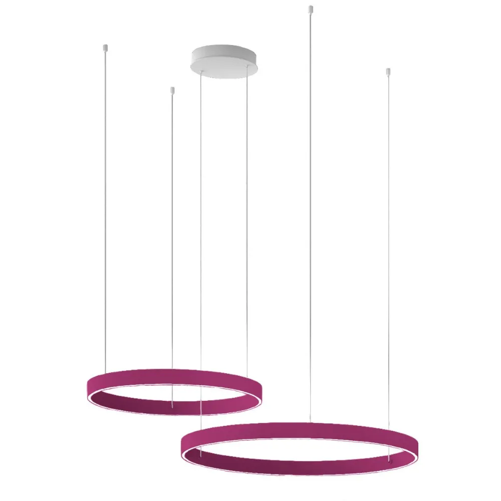 Die moderne Pendelleuchte GAME BIS S80+S100 besteht aus zwei eleganten, leuchtenden Kreisen mit 80 cm bzw. 100 cm Durchmesser, die einen dramatischen und zugleich raffinierten Effekt erzeugen. Getragen von einem stabilen Deckenfuß und ausgestattet mit drei Dimmern, bietet diese Leuchte dank weißer, opalfarbener Silikondiffusoren eine bidirektionale Beleuchtung, die das Licht sowohl nach oben als auch nach unten streut. Diese Anordnung sorgt nicht nur für eine gleichmäßige und flächige Ausleuchtung der darunterliegenden Fläche, sondern nutzt die Decke auch als natürlichen Reflektor, wodurch der Raum optisch erweitert und eine besonders ästhetische Atmosphäre geschaffen wird.