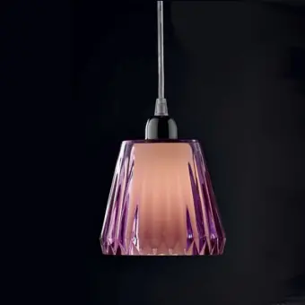 Struktur aus verchromtem Metall. Diffusor aus externem Acrylmaterial in taubengrau, lila oder transparent , innen in weißer Farbe.