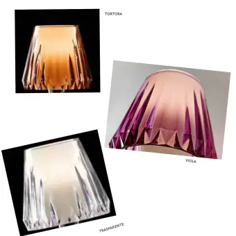 Struktur aus verchromtem Metall. Diffusor aus Acrylmaterial Außenfarbe grau, lila oder transparent, alle 'innerhalb weißer Farbe.