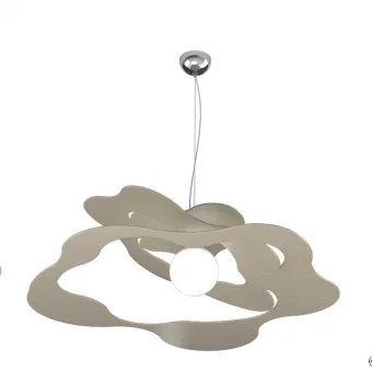 Moderne Aufhängung mit einem geschwungenen und originellen Design. Ein schöner Tropfen, der einer Blume ähneln und eine angenehme Bewegung im Raum erzeugen kann. Der Metalldiffusor ermöglicht Licht- und Schattenspiele im Raum. Ein Produkt Made in Italy.